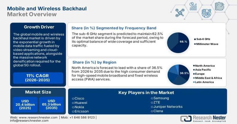The mobile and wireless backhaul market is witnessing a rapid transformation driven by the exponential surge in mobile data traffic, 5G rollouts, and demand for seamless connectivity. As network operators move toward ultra-low latency and high-capacity solutions, backhaul technologies have become pivotal in sustaining next-generation communication ecosystems.The market size is projected to expand from USD 20.4 billion in 2025 to USD 65.3 billion by 2035, registering a growth rate of 11% (2026-2035). This growth trajectory reflects the escalating deployment of small cells, fiber, and microwave-based backhaul solutions to meet the connectivity needs of 5G and IoT-enabled applications across urban and rural landscapes.