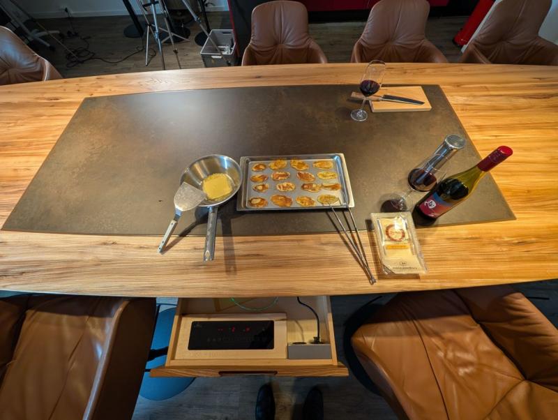 The furniture makers from Unterkrumbach combine ergonomics, fine solid wood, and an integrated cooking facility to create a globally unique office furniture concept.