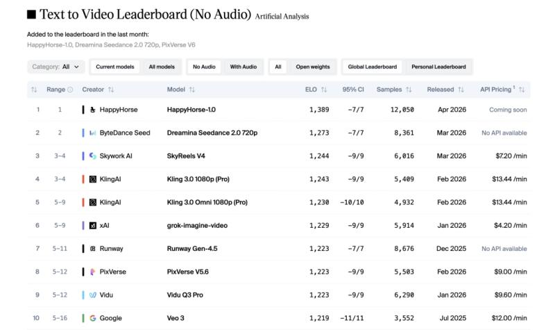 Mystery AI Video Generator Happy Horse 1.0 Reaches No. 1, Surpasses Sora, Veo