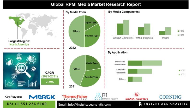 InsightAce Analytic Pvt. Ltd. announces the release of a market assessment report on the "Global RPMI Media Market Size, Share & Trends Analysis Report By Media Form (Liquid Type, Powder Type), by Media Components (Without L-glutamine, With L-glutamine) and by Application (Scientific Research, Industrial Production), Region, Market Outlook And Industry Analysis 2031"