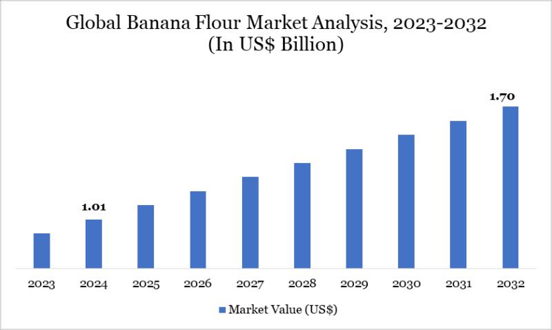 Banana Flour Market Size reached US$ 1.01 billion in 2024 and is expected to reach US$ 1.70 billion by 2032, growing with a CAGR of 6.73% during the forecast period 2025-2032.