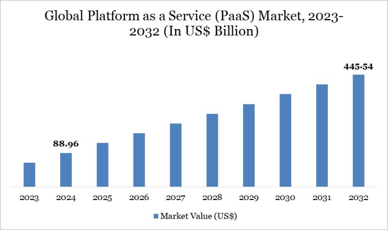The Global Platform as a Service (PaaS) Market reached USD 88.96 billion in 2024 and is expected to reach USD 445.54 billion by 2032, growing at a robust CAGR of 22.31% during the forecast period 2025-2032.