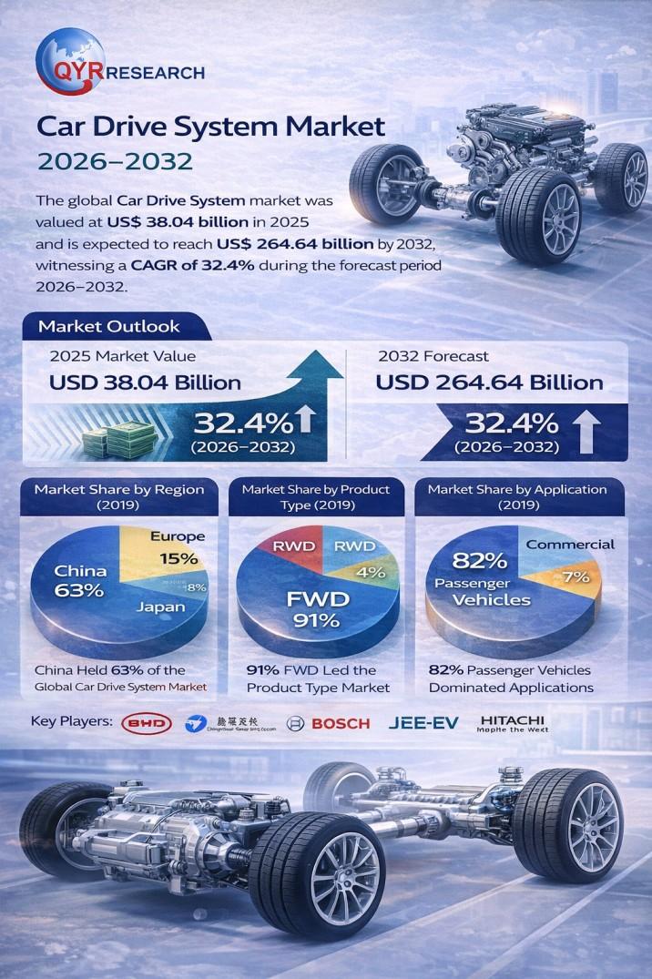 QY Research Inc., A global market research and consulting firm, has announced the release of its latest 2026 report titled "Car Drive System - Global Market Share and Ranking, Overall Sales and Demand Forecast 2026-2032." The report provides a data-driven analysis of the global Car Drive System market, integrating historical insights from 2020-2025 with forward-looking forecasts through 2032. It covers market size, competitive landscape, demand…