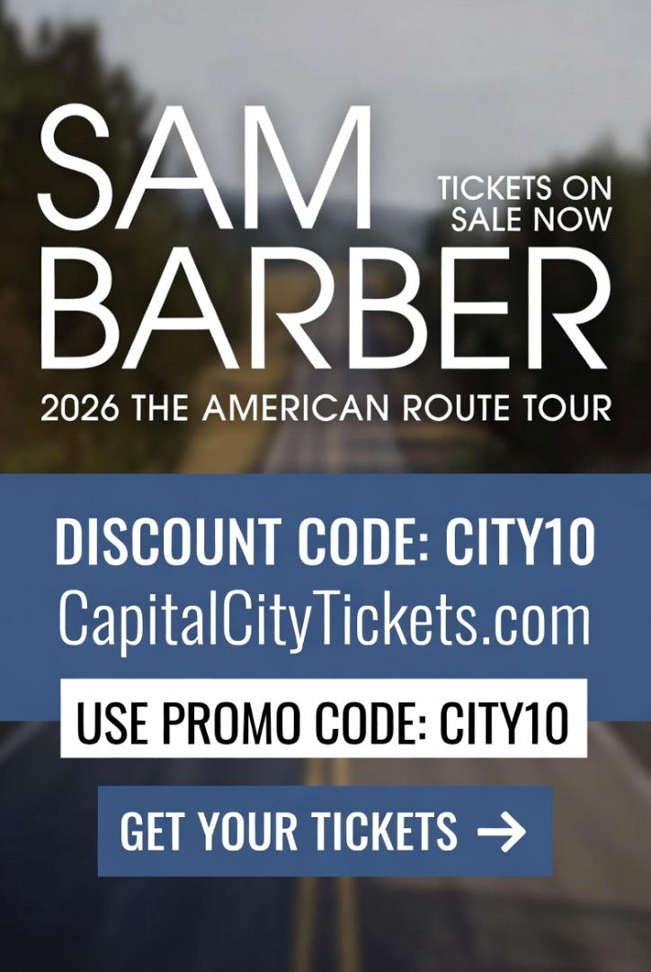 See Sam Barber live on The American Route Tour in 2026! Grab discounted tickets with promo code CITY10 at CapitalCityTickets.com. Check full tour dates, secure the best seats, and enjoy exclusive deals. Don't miss your chance to experience Sam Barber's unforgettable performance-buy your tickets now and save big on this must-see tour.