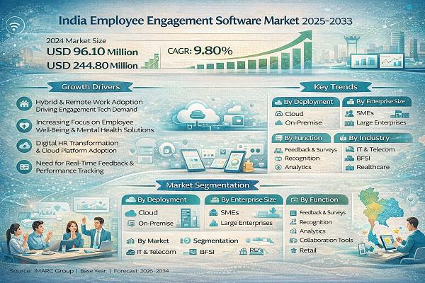 According to IMARC Group's report titled "India Employee Engagement Software Market Size, Share, Trends and Forecast by Deployment Mode, Enterprise Size, Function, Industry, and Region, 2025-2033" the report offers a comprehensive analysis of the industry, including market share, growth, trends, and regional insights.