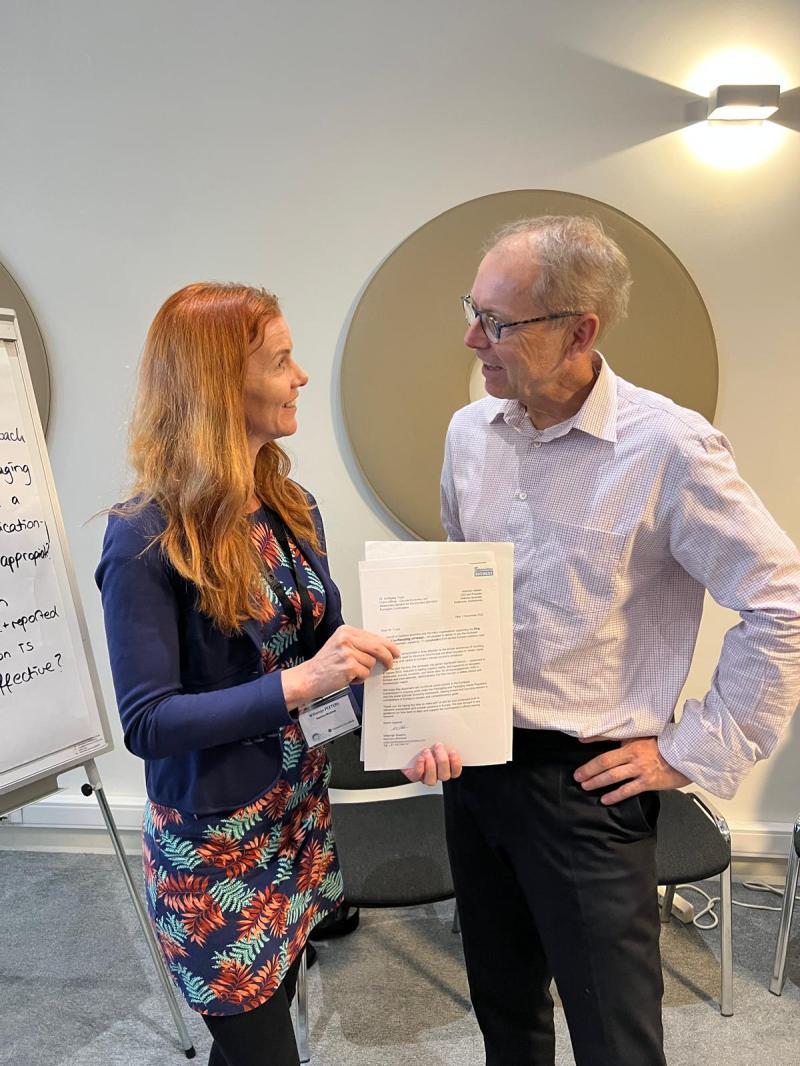 Willemijn Peeters delivers the Ring the Bell Industry Statement to Wolfgang Trunk, Policy Officer DG Environment EU Commission.