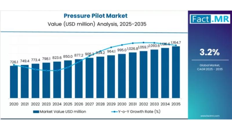 The global pressure pilot market is poised for steady growth over the next decade, with valuations projected to rise from USD 850 million in 2025 to USD 1,164.7 million by 2035, reflecting an absolute increase of USD 320 million. This represents a compound annual growth rate (CAGR) of 3.2% during the forecast period, highlighting the expanding demand for precise pressure control solutions across industrial sectors.