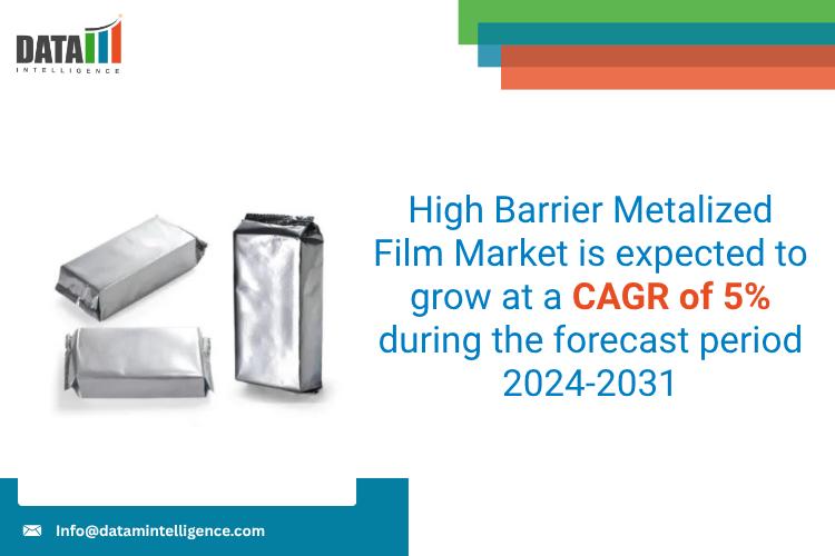 High Barrier Metalized Film Market is expected to grow at a CAGR of 5% during the forecast period 2024-2031According to DataM Intelligence Comprehensive Report has released its latest report on the "High Barrier Metalized Film Market Size 2025," providing a detailed analysis of market trends, key growth drivers, competitive landscape, and regional insights. The report includes market size (value and volume), CAGR projections, and emerging opportunities that help businesses identify growth areas and build effective strategies. Backed by data-driven insights and future outlook, this study serves as a valuable resource for companies looking to stay competitive and capitalize on market potential.