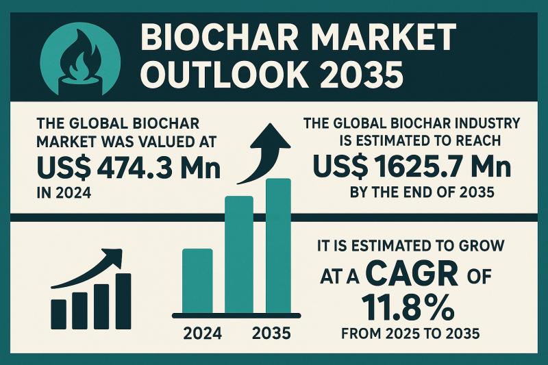 The global biochar market(https://www.transparencymarketresearch.com/biochar-market.html), valued at US$ 474.3 Mn in 2024, is witnessing rapid expansion as it transitions from a niche agricultural input to a cornerstone of sustainable and circular economy solutions. With an anticipated CAGR of 11.8% from 2025 to 2035, the market is projected to reach US$ 1,625.7 Mn by 2035.
