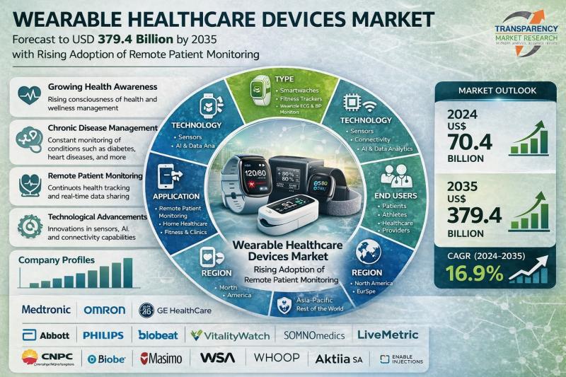 Wearable Healthcare Devices Market Size Forecast to USD 379.4 Billion by 2035 wi …