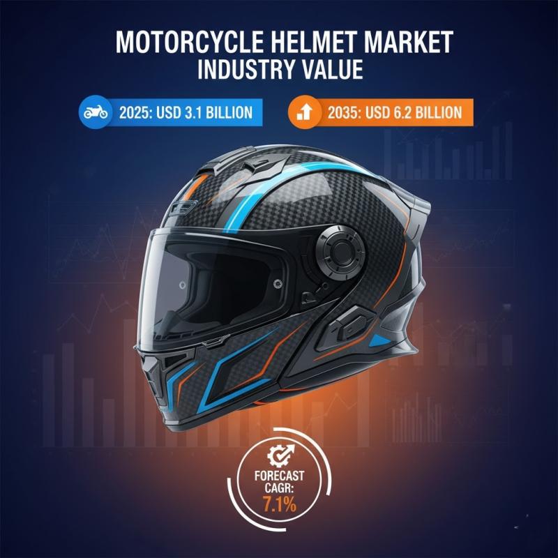 The global Motorcycle Helmet Market is set for strong expansion, rising from USD 3.1 billion in 2025 to USD 6.2 billion by 2035, at a 7.1% CAGR, according to recent industry research. Elevated road safety awareness, increasing adoption of two-wheelers for daily commute, and demand for technologically advanced helmets are powering this growth trend.Quick Market Highlights