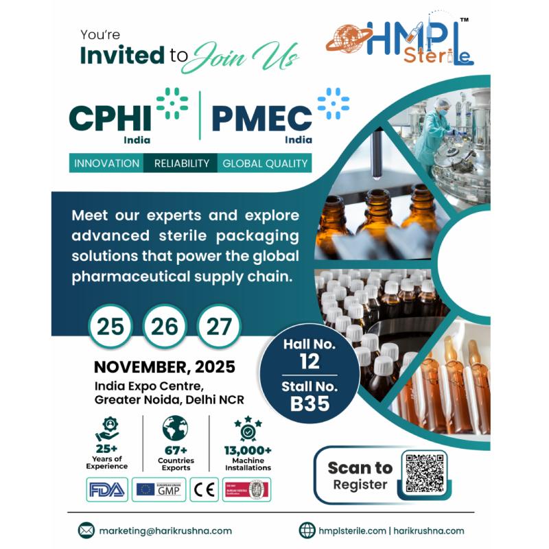 Get ready to connect with the global pharma community at CPHI & PMEC India 2025, where South Asia's pharmaceutical innovation and excellence take center stage. This prestigious event invites industry professionals, manufacturers, and innovators from around the world to come together, exchange ideas, and explore the latest advancements shaping the pharmaceutical landscape.At HMPL Sterile, we are excited to showcase our cutting-edge aseptic and sterile packaging solutions designed to enhance quality, safety, and efficiency in pharmaceutical manufacturing. As the industry evolves rapidly, this event provides the perfect platform to witness how we are driving innovation, empowering growth, and supporting global pharma excellence.