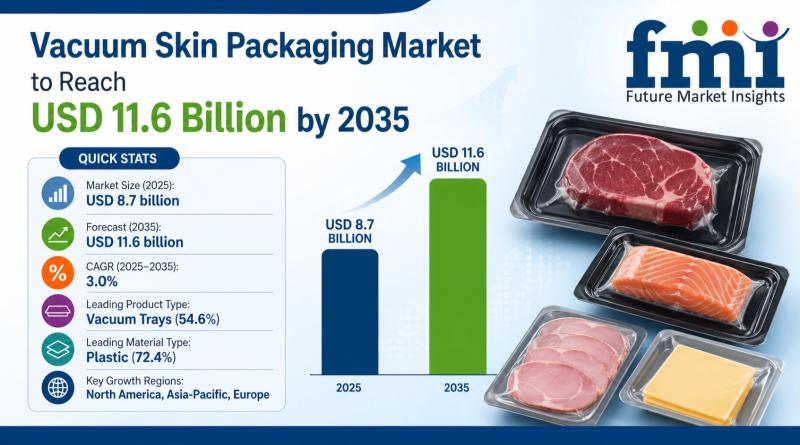 The global vacuum skin packaging market is gaining strong momentum as industries prioritize extended shelf life, product safety, and visual appeal in food packaging. According to the latest insights by Future Market Insights, the market is valued at USD 8.7 billion in 2025 and is projected to reach USD 11.6 billion by 2035, expanding at a CAGR of 3.0% during the forecast period. Growth is supported by rising demand for…