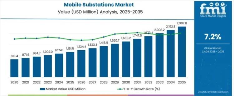 The global mobile substations market is poised for robust expansion through 2035, fueled by grid modernization, natural disaster recovery, and the urgent push for renewable energy connectivity. According to Future Market Insights (FMI), the market is valued at USD 1,151.5 million in 2025 and is projected to reach USD 2,307.8 million by 2035, advancing at a compound annual growth rate (CAGR) of 7.2%.