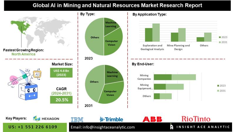 InsightAce Analytic Pvt. Ltd. announces the release of a market assessment report on the "Global AI in Mining and Natural Resources Market - (By Type (Machine Learning, Computer Vision, Natural Language Processing, Robotics), By Application (Exploration and Geological Analysis, Mine Planning and Design, Autonomous Vehicles and Equipment, Predictive Maintenance, Safety and Risk Assessment, Environmental Monitoring and Management, Supply Chain Optimization, Resource Extraction and Processing, Mine Closure and Rehabilitation), By End-User (Mining Companies, Mining Equipment Manufacturers, Consulting and Service Providers, Research and Academia)), Trends, Industry Competition Analysis, Revenue and Forecast To 2034."According to the latest research by InsightAce Analytic, the Global AI in Mining and Natural Resources Market is valued at USD 5.4 Bn in 2024 , and it is expected to reach USD 35.2 Bn by the year 2034, with a CAGR of 20.6% during the forecast period of 2025-2034.