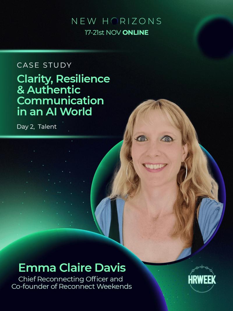 Emma's online session at HR Week will take place at 16:11 CET on Tuesday 18th November, and she is also hosting a Reconnect day retreat in London on Wednesday 21st January 2026, which will be an opportunity for business leaders to reconnect in person.