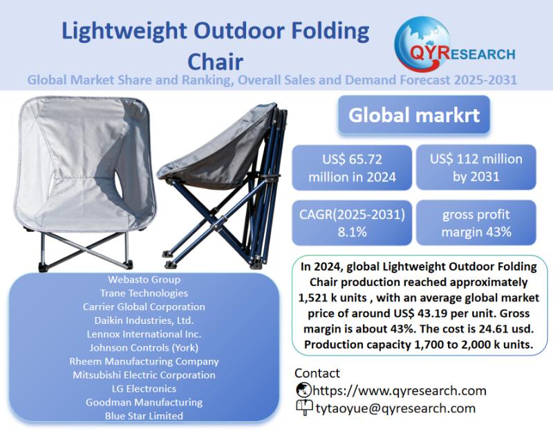 Global leading market research publisher QYResearch published the release of its latest report, "Lightweight Outdoor Folding Chair - Global Market Share, Ranking, Sales, and Demand Forecast 2025-2031". This in-depth report provides a complete analysis of the global Lightweight Outdoor Folding Chair market, offering critical insights into market size, share, demand, industry development status, and future forecasts.…