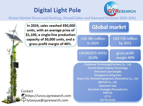 Unlock the Future of the Digital Light Pole Market: Comprehensive Global Market Report 2025-2031Global leading market research publisher QYResearch published the release of its latest report, "Digital Light Pole - Global Market Share, Ranking, Sales, and Demand Forecast 2025-2031". This in-depth report provides a complete analysis of the global Digital Light Pole market, offering critical insights into market size, share, demand, industry development status, and future forecasts. Whether you're a stakeholder, investor, or industry player, this report equips you with the data and strategies needed to stay ahead in a rapidly evolving market.