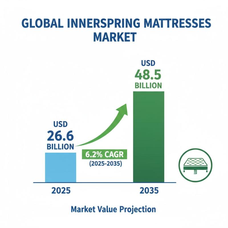 The global innerspring mattresses market, valued at USD 26.6 billion in 2025, is on track for remarkable expansion, with projections indicating it will reach USD 48.5 billion by 2035. This growth, at a steady compound annual growth rate (CAGR) of 6.2%, reflects increasing consumer demand for affordable, breathable, and durable bedding solutions across both developed and emerging economies.