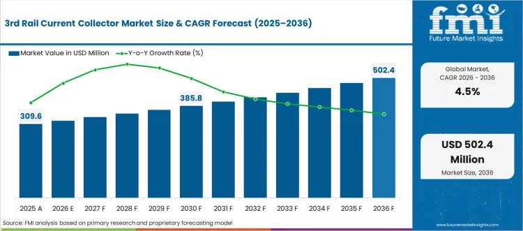 According to the latest analysis by Future Market Insights, the global 3rd rail current collector market is entering a steady growth phase as metro rail expansion and automated transit systems reshape power collection requirements. The market is valued at USD 323.5 million in 2026 and is projected to reach USD 502.4 million by 2036, expanding at a CAGR of 4.5%. The sector is expected to generate an incremental opportunity of…
