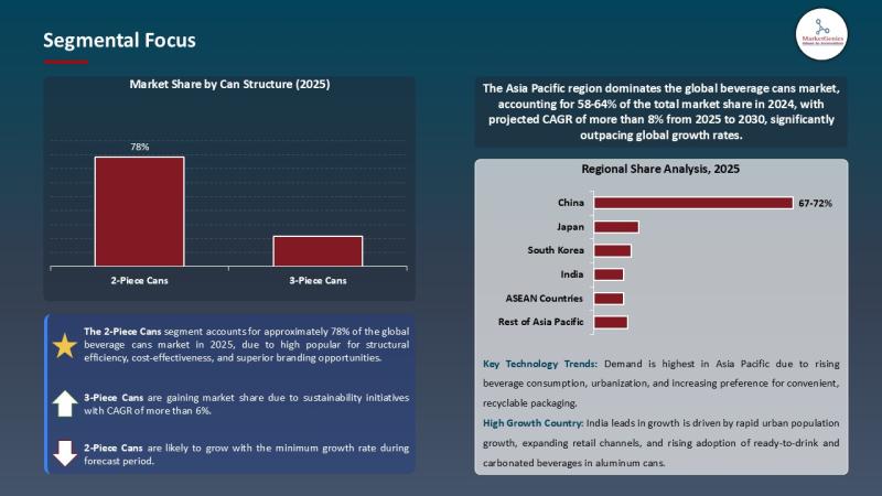 The Asia Pacific Beverage Cans Market dominates global expansion, supported by the region's demographic strength and economic momentum. As middle-class consumption increases, beverage companies are investing in innovative can designs and localized manufacturing. The shift toward recyclable aluminum is also aligned with government sustainability mandates across the region.