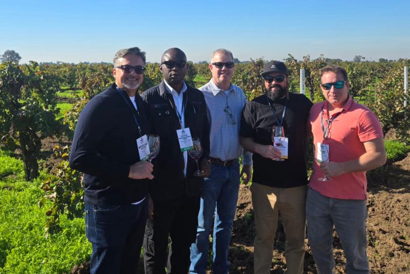 L-R: Dr. Victor Ikem and global colleagues tour the Lodi wine region during California Wine Institute's Global Buyers Marketplace.