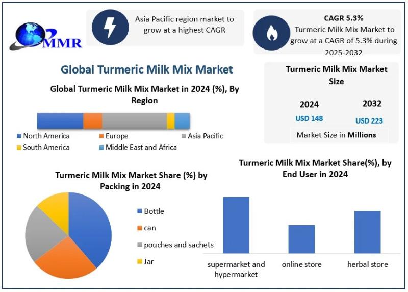 Turmeric Milk Mix Market was Valued at USD 148 Mn in 2024 and is Expected to Reach USD 223.7 Mn by 2032 at a CAGR 5.3% of During the Forecast PeriodTurmeric Milk Mix Market Overview: