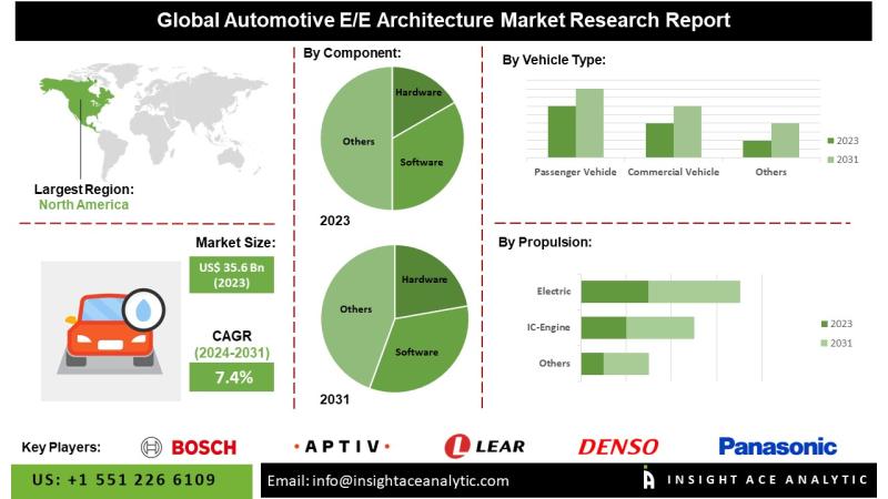 InsightAce Analytic Pvt. Ltd. announces the release of a market assessment report on the "Global Automotive E/E Architecture Market- (By Vehicle Type (Passenger Vehicle, Commercial Vehicle), By Propulsion (IC-Engine, Electric), By Component (Hardware, Software)), By Region, Trends, Industry Competition Analysis, Revenue and Forecast To 2031."