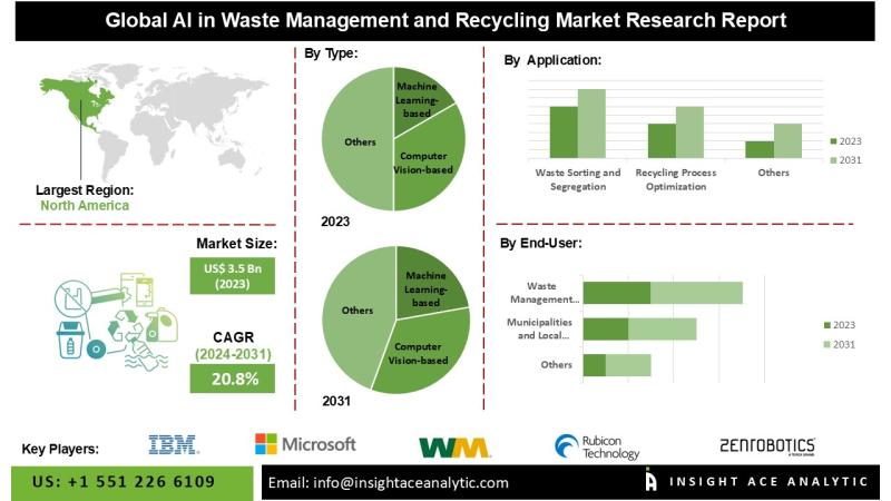 InsightAce Analytic Pvt. Ltd. announces the release of a market assessment report on the "Global AI in Waste Management and Recycling Market- (By Type (Machine Learning-based AI Solutions, Computer Vision-based AI Solutions, Natural Language Processing-based AI Solutions, Robotics and Automation in Waste Management) By Application; By End-User, By Region, Trends, Industry Competition Analysis, Revenue and Forecast To 2031."