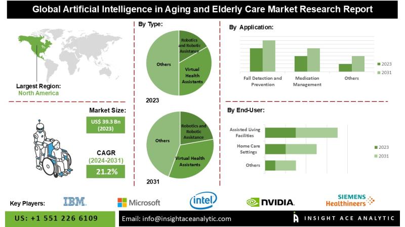 InsightAce Analytic Pvt. Ltd. announces the release of a market assessment report on the "Global AI in Aging and Elderly Care Market- (By Type (Natural Language Processing Systems, Robotics and Robotic Assistance, Smart Home Devices and IoT Solutions, Machine Learning and Predictive Analytics, Virtual Health Assistants) By Application; By End-User, By Technology, By Region, Trends, Industry Competition Analysis, Revenue and Forecast To 2034."