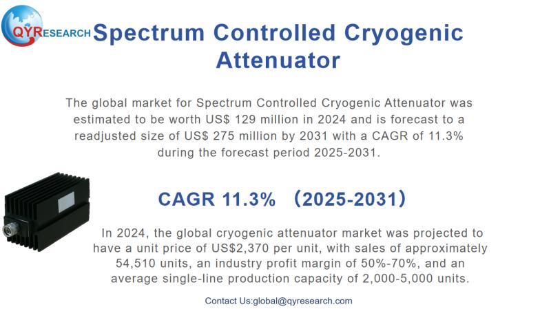 The global market for Spectrum Controlled Cryogenic Attenuator was estimated to be worth US$ 129 million in 2024 and is forecast to a readjusted size of US$ 275 million by 2031 with a CAGR of 11.3% during the forecast period 2025-2031.