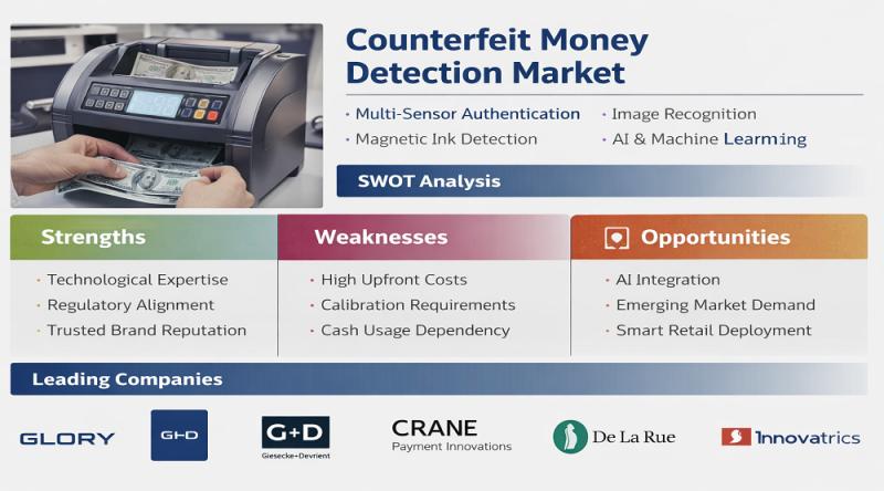 The Counterfeit Money Detection Market plays a critical role in safeguarding financial systems, retail transactions, and cash-intensive economies. As counterfeit techniques grow more sophisticated, detection technologies have evolved beyond basic ultraviolet checks to include multi-sensor authentication, AI-powered image recognition, magnetic ink detection, and machine-learning-based validation systems. This evolution has intensified competition among established manufacturers and technology-driven entrants, creating a dynamic market shaped by innovation, regulation, and regional adoption patterns.