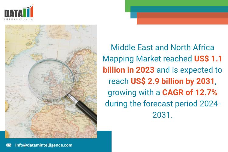 Middle East and North Africa Mapping Market reached US$ 1.1 billion in 2023 and is expected to reach US$ 2.9 billion by 2031, growing with a CAGR of 12.7% during the forecast period 2024-2031.