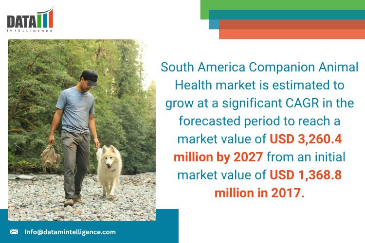 South America Companion Animal Health market is estimated to grow at a significant CAGR in the forecasted period to reach a market value of USD 3,260.4 million by 2027 from an initial market value of USD 1,368.8 million in 2017.
