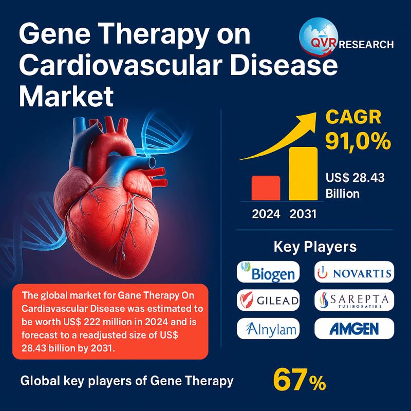 Los Angeles, United States - QY Research has unveiled its latest study titled "Global Gene Therapy On Cardiovascular Disease Market Share and Ranking, Overall Sales and Demand Forecast 2025-2031." This newly released report delivers a comprehensive overview of the global Gene Therapy On Cardiovascular Disease market, analyzing the forces shaping its growth trajectory and providing valuable insights for stakeholders, investors, and industry professionals. the research covers key areas including market dynamics, segmentation, regional performance, competitive landscape, and emerging technology trends that are redefining industry standards. Backed by reliable data and expert analysis, the report serves as a trusted guide to understanding both microeconomic and macroeconomic factors driving market evolution.The global market for Gene Therapy On Cardiovascular Disease was estimated to be worth US$ 322 million in 2024 and is forecast to a readjusted size of US$ 28.43 billion by 2031 with a CAGR of 91.0% during the forecast period 2025-2031.