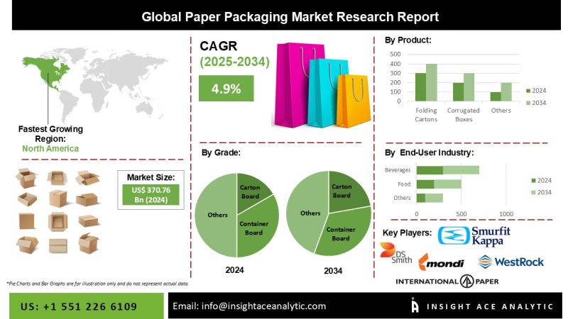 InsightAce Analytic Pvt. Ltd. announces the release of a market assessment report on the "Global Paper Packaging Market Size, Share & Trends Analysis Report By Grade (Carton board, Containerboard), Product Type (Folding Cartons, Corrugated Boxes), End User Industry (Food, Beverage, Healthcare, Personal Care, Household Care, Electrical Products)- Market Outlook And Industry Analysis 2034"