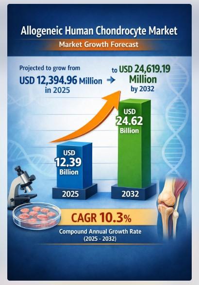 The Allogeneic Human Chondrocyte Market is entering a period of sustained expansion, reflecting the growing importance of regenerative medicine and cell-based orthopedic therapies. The market is projected to grow from USD 12,394.96 million in 2025 to USD 24,619.19 million by 2032, registering a compound annual growth rate (CAGR) of 10.3% during the forecast period. This robust growth trajectory is underpinned by rising musculoskeletal disorders, increasing sports injuries, technological advancements in…