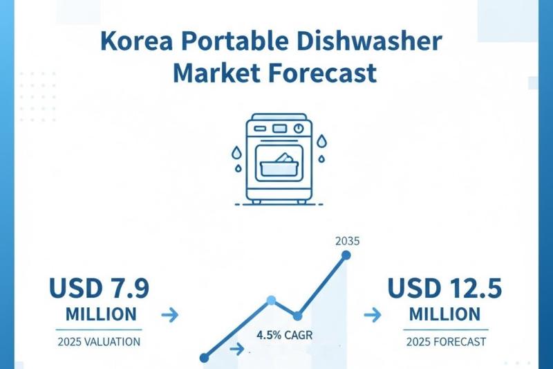 The Korea portable dishwasher market is poised for steady growth over the next decade, driven by urbanization, changing consumer lifestyles, and increasing environmental awareness. According to a comprehensive report by Future Market Insights (FMI), the market size is projected to grow from USD 7.9 million in 2025 to USD 12.5 million by 2035, registering a compound annual growth rate (CAGR) of 4.5%.Subscribe for Year-Round Insights → Stay ahead with quarterly and annual data updates: https://www.futuremarketinsights.com/reports/sample/rep-gb-18053