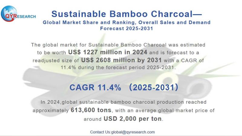 The global market for Sustainable Bamboo Charcoal was estimated to be worth US$ 1227 million in 2024 and is forecast to a readjusted size of US$ 2608 million by 2031 with a CAGR of 11.4% during the forecast period 2025-2031.