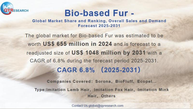 The global market for Bio-based Fur was estimated to be worth US$ 655 million in 2024 and is forecast to a readjusted size of US$ 1048 million by 2031 with a CAGR of 6.8% during the forecast period 2025-2031.