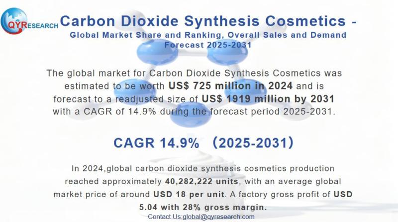 The global market for Carbon Dioxide Synthesis Cosmetics was estimated to be worth US$ 725 million in 2024 and is forecast to a readjusted size of US$ 1919 million by 2031 with a CAGR of 14.9% during the forecast period 2025-2031.