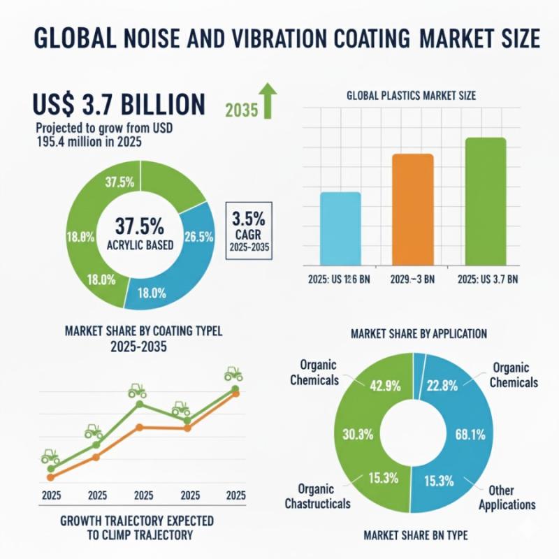 The global noise and vibration coatings market is poised for steady expansion through 2035, fueled by stringent noise emission regulations, rising demand for acoustic comfort in vehicles and machinery, and innovations in sustainable formulations. According to Future Market Insights (FMI), the market is valued at USD 2.6 billion in 2025 and is projected to reach USD 3.7 billion by 2035, expanding at a compound annual growth rate (CAGR) of 3.5%.