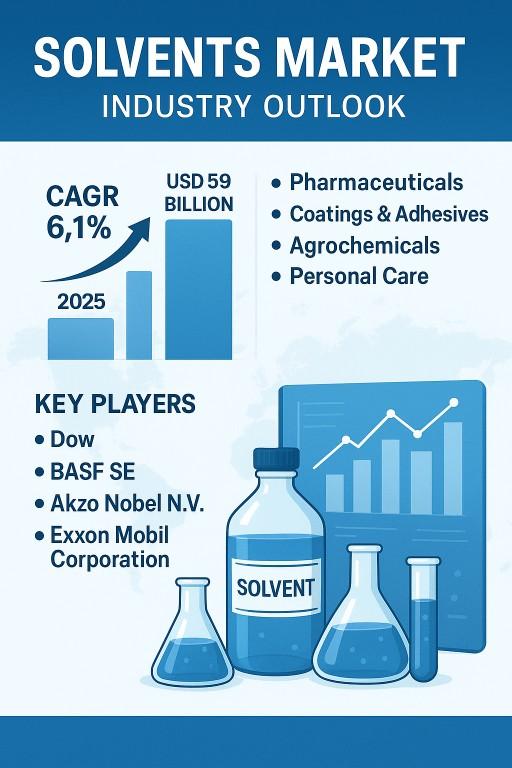 The global Solvents Market is entering a pivotal growth phase, driven by rising demand from pharmaceuticals, coatings, adhesives, agrochemicals, and personal care industries. According to the latest industry outlook, the sector is projected to grow from USD 39 billion in 2025 to USD 59 billion by 2032, advancing at a steady CAGR of 6.1% during the forecast period. Technological advancements, sustainable product innovations, and expanding manufacturing bases across emerging economies continue to reshape the competitive landscape and open new revenue avenues for market participants.Get a Sample PDF Brochure of the Report (Use Corporate Email ID for a Quick Response):
