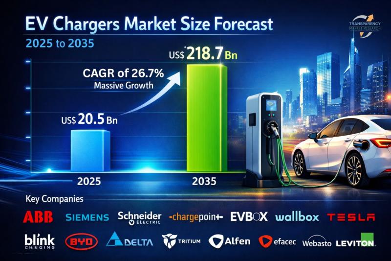 The global EV chargers market was valued at US$ 16.2 billion in 2024 and is projected to reach US$ 218.7 billion by 2035, expanding at a robust CAGR of 26.7% from 2025 to 2035. This exceptional growth reflects the rapid electrification of transportation, aggressive government decarbonization targets, and large-scale investments in charging infrastructure worldwide.