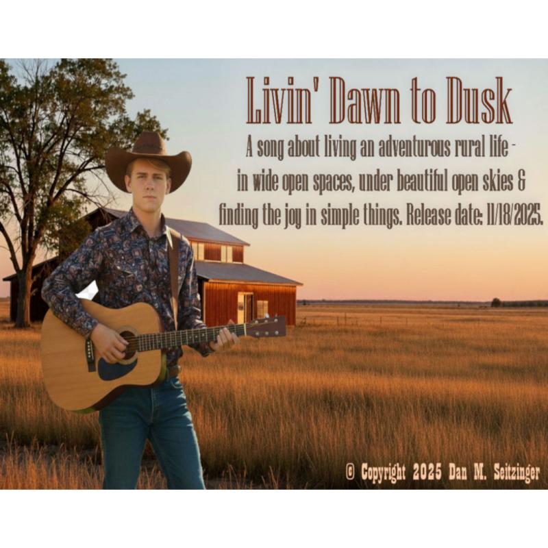 Dan Seitzinger's NEW Music Out Now, Uplifting Country Single "Livin' Dawn to Dusk"Santa Clara, CA - Independent Bay Area songwriter Dan Seitzinger is set to release his newest single, "Livin' Dawn to Dusk," a heartfelt country track that paints a vivid portrait of rural life and the joy found in simple moments.