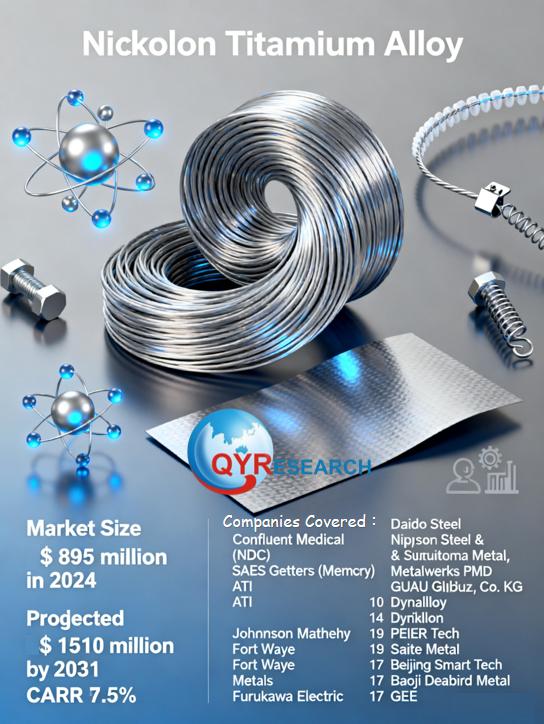 The global market for Nickel Titanium Alloy (Ni-Ti Alloy) was estimated to be worth US$ 895 million in 2024 and is forecast to a readjusted size of US$ 1510 million by 2031 with a CAGR of 7.5% during the forecast period 2025-2031.