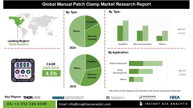 InsightAce Analytic Pvt. Ltd. announces the release of a market assessment report on the "Global Manual Patch Clamp Market- (By Type (Amplifier, Micromanipulator, Pump and Perfusion System, Anti-vibration Table, Pipette Puller, Temperature Controller, Faraday Cage), By Application (Drug Development, Disease Research)), Trends, Industry Competition Analysis, Revenue and Forecast To 2034."