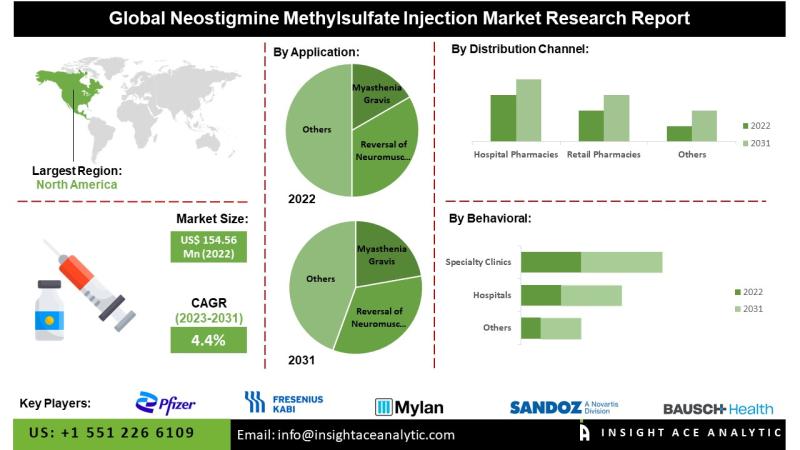 InsightAce Analytic Pvt. Ltd. announces the release of a market assessment report on the "Global Neostigmine Methylsulfate Injection Market- (By Application (Myasthenia Gravis, Reversal Of Neuromuscular Blockade), By Distribution Channel (Hospital Pharmacies, Retail Pharmacies, Online Pharmacies), By End User (Hospitals, Specialty Clinics, Ambulatory Surgical Centers)), Trends, Industry Competition Analysis, Revenue and Forecast To 2031."