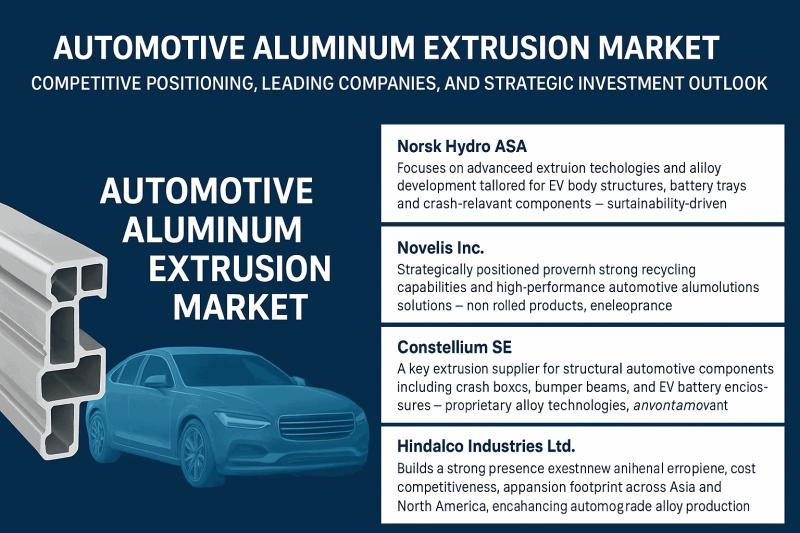 The Automotive Aluminum Extrusion Market has become a central pillar of vehicle lightweighting initiatives, driven by automakers' growing focus on efficiency, structural strength, and sustainability. As global OEMs accelerate the transition toward electric mobility, demand for extruded aluminum components-spanning body structures, battery enclosures, chassis systems, crash management systems, and thermal solutions-continues to strengthen. The market's competitive landscape is shaped by a mix of global manufacturers, specialized extrusion companies, and vertically…
