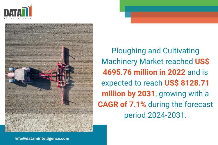 Global Ploughing and Cultivating Machinery Market reached US$ 4695.76 million in 2022 and is expected to reach US$ 8128.71 million by 2031, growing with a CAGR of 7.1% during the forecast period 2024-2031.